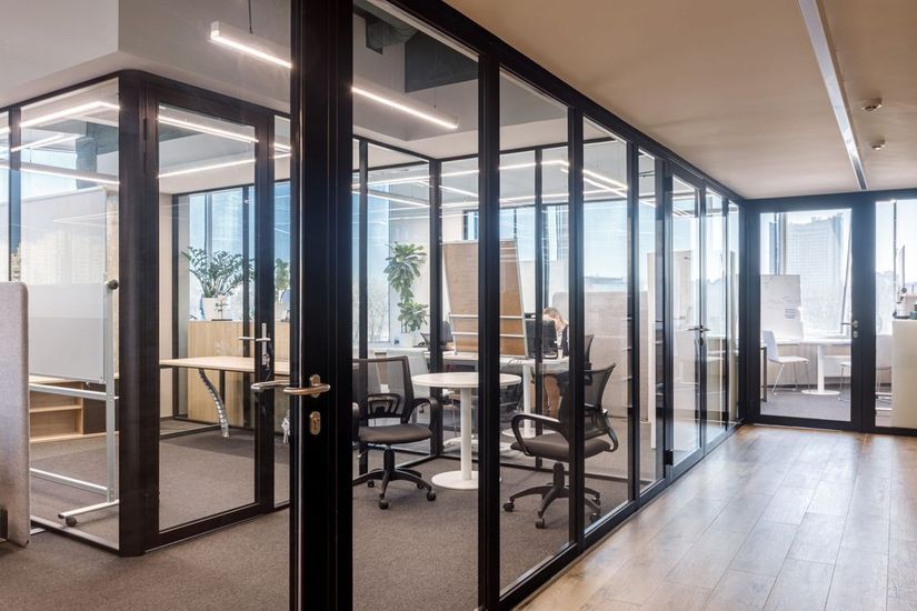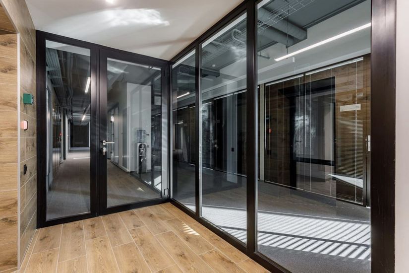 - Bold architectural solutions: an elegant thin system of fire protection profiles; maximum glazing without additional imposts; painting in any RAL color